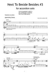 Next To Beside Besides is a series of ‘translations’ of the piece Beside Besides for solo cello, which is itself a modification of the ending of the piece Besides for three amplified and three muted instruments. The translations take into account the parts of the original composition that were conceived of with a focus on the gestures of the movements producing the sound – a kind of choreographic translation. All translations can be played together in any combination simultaneously as duos, trios, etc. up to ensemble pieces. The only versions that I recommend playing solo (unless for a specific conceptual or dramaturgical reason) are #0 and #1. Different combinations can be played after each other as movements or between other pieces in a concert as ritornellos, but one should look for maximum variation in the order or build-up in order to avoid the feeling of repeating a piece. Combinations with video (preferably including different versions for the same player) are called Self-Reflecting Next To Beside Besides. Ideally the instruments should sit in a line to emphasise the parallel movements. The piece may be played with a click track.