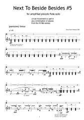 Next To Beside Besides is a series of ‘translations’ of the piece Beside Besides for solo cello, which is itself a modification of the ending of the piece Besides for three amplified and three muted instruments. The translations take into account the parts of the original composition that were conceived of with a focus on the gestures of the movements producing the sound – a kind of choreographic translation. All translations can be played together in any combination simultaneously as duos, trios, etc. up to ensemble pieces. The only versions that I recommend playing solo (unless for a specific conceptual or dramaturgical reason) are #0 and #1. Different combinations can be played after each other as movements or between other pieces in a concert as ritornellos, but one should look for maximum variation in the order or build-up in order to avoid the feeling of repeating a piece. Combinations with video (preferably including different versions for the same player) are called Self-Reflecting Next To Beside Besides. Ideally the instruments should sit in a line to emphasise the parallel movements. The piece may be played with a click track.