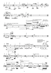 Next To Beside Besides is a series of ‘translations’ of the piece Beside Besides for solo cello, which is itself a modification of the ending of the piece Besides for three amplified and three muted instruments. The translations take into account the parts of the original composition that were conceived of with a focus on the gestures of the movements producing the sound – a kind of choreographic translation. All translations can be played together in any combination simultaneously as duos, trios, etc. up to ensemble pieces. The only versions that I recommend playing solo (unless for a specific conceptual or dramaturgical reason) are #0 and #1. Different combinations can be played after each other as movements or between other pieces in a concert as ritornellos, but one should look for maximum variation in the order or build-up in order to avoid the feeling of repeating a piece. Combinations with video (preferably including different versions for the same player) are called Self-Reflecting Next To Beside Besides. Ideally the instruments should sit in a line to emphasise the parallel movements. The piece may be played with a click track.